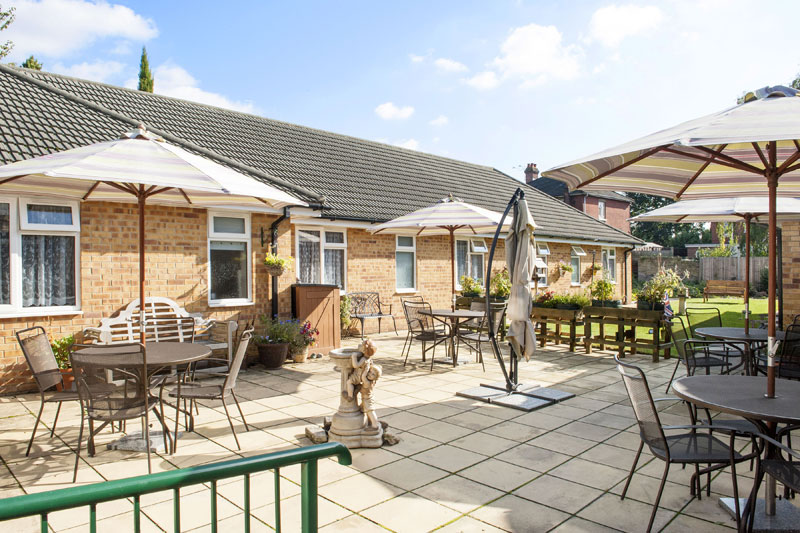 The main garden has a large patio and grassed area with seating and umbrellas providing shade on sunny days. There is also a further patio garden to the rear, with seating and garden furniture. A pathway leads around the garden if residents would like a walk.